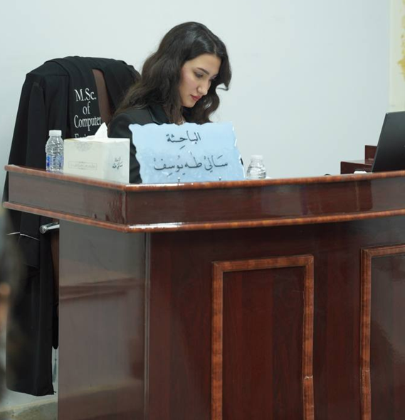 After a scientific discussion by the members of the discussion committee, listening to the researcher’s defense, and evaluating the thesis, the researcher was awarded a master’s degree in computer engineering.
