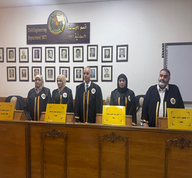 The College of Engineering at the University of Baghdad hosted the public defense of Master’s student Rawaa Rafea Khudair from the Department of Civil Engineering for her thesis entitled: