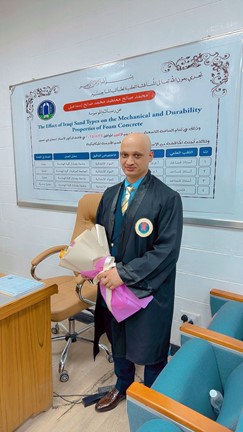“The Effect of Iraqi Sand Types on the Properties of Foamed Concrete”, on Monday, 25/8/2025, at (Prof. Dr. Ihsan Yahya Hussein Hall), under the supervision of (Dr. Mohammed Zuhear Abdulameer Al-Mulali).
