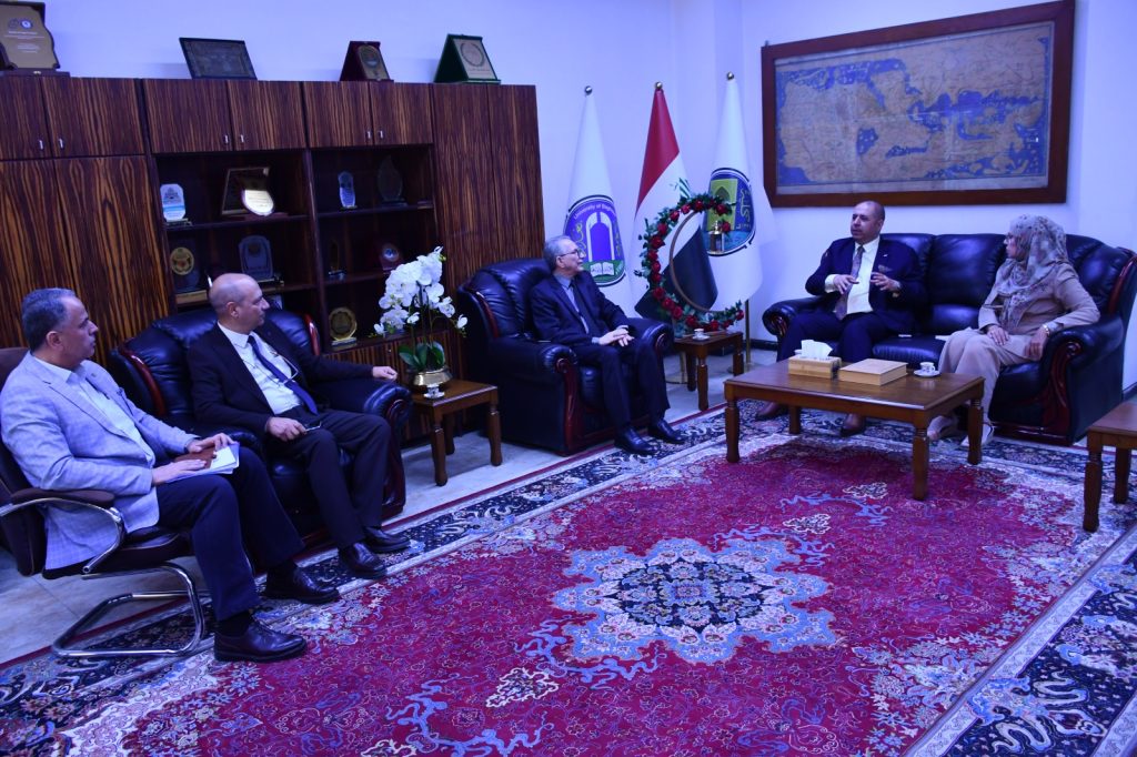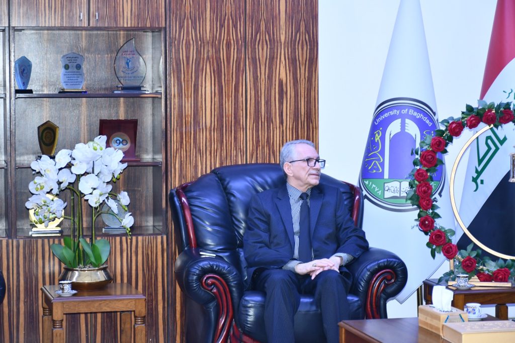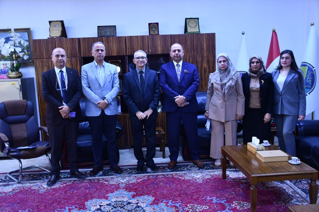 The Dean of the College of Engineering at the University of Baghdad, Prof. Ghassan Hamid Abdul-Majid, received on Tuesday, November 26, 2025, the authorized director of Forsan Al-Jawda Company for Training and Human Resource Development, Mr. Mohammed Al-Allaf. The meeting was attended by Prof. Ziyad Tariq Abdul Ali, Associate Dean for Scientific Affairs and Graduate Studies, Asst. Prof. Iman Qasim, Director of the Quality Assurance and Performance Evaluation Division, and Asst. Prof. Haider Mohammed from the Environmental Engineering Department.